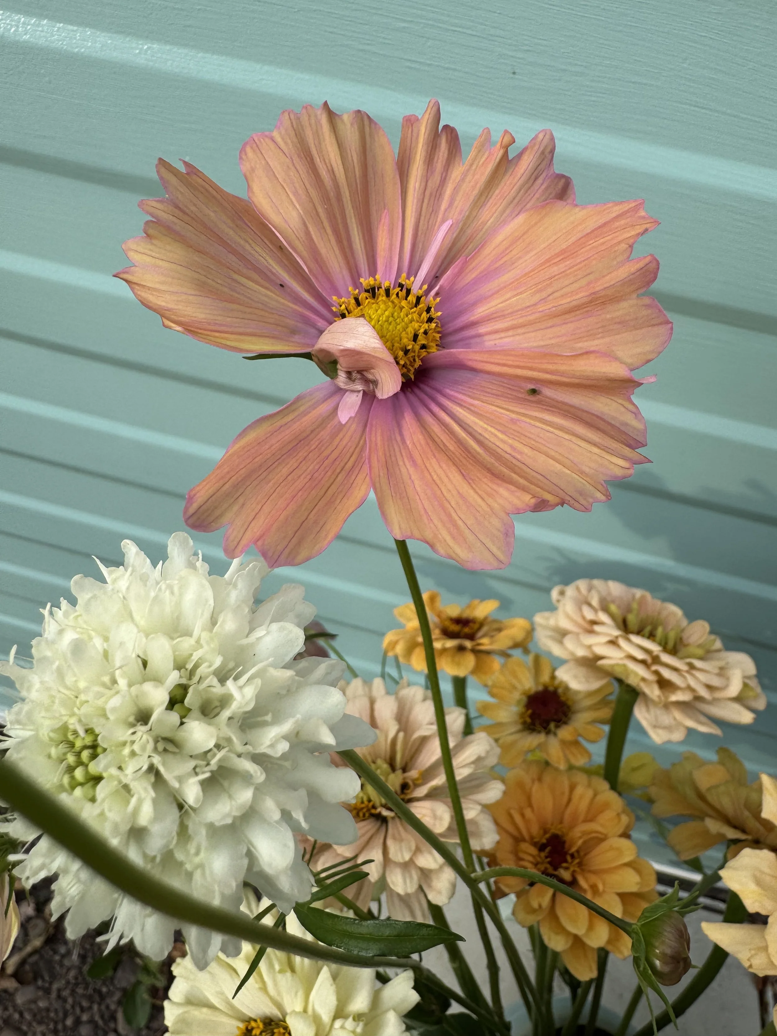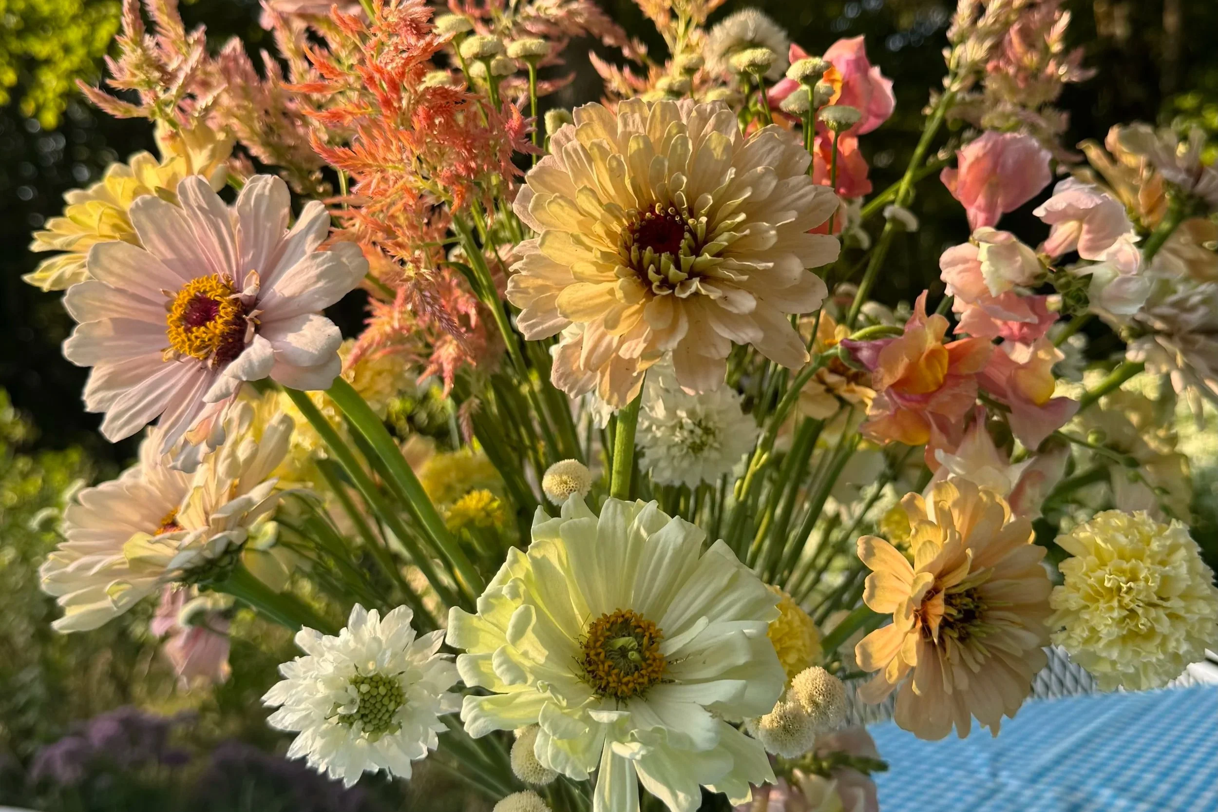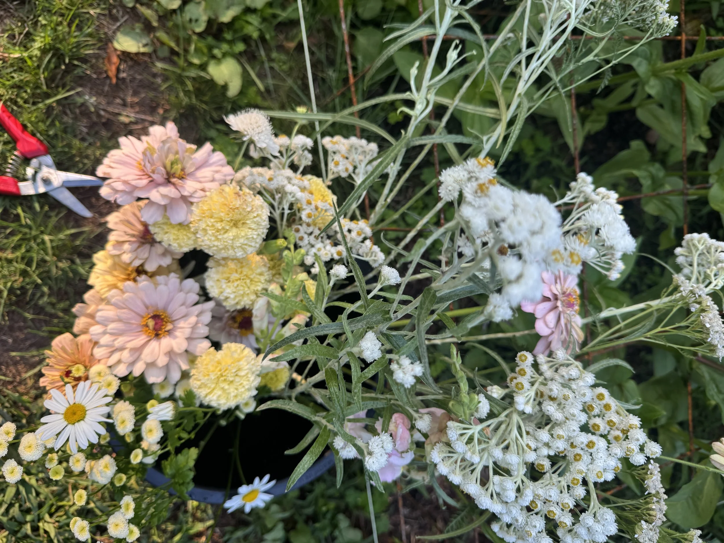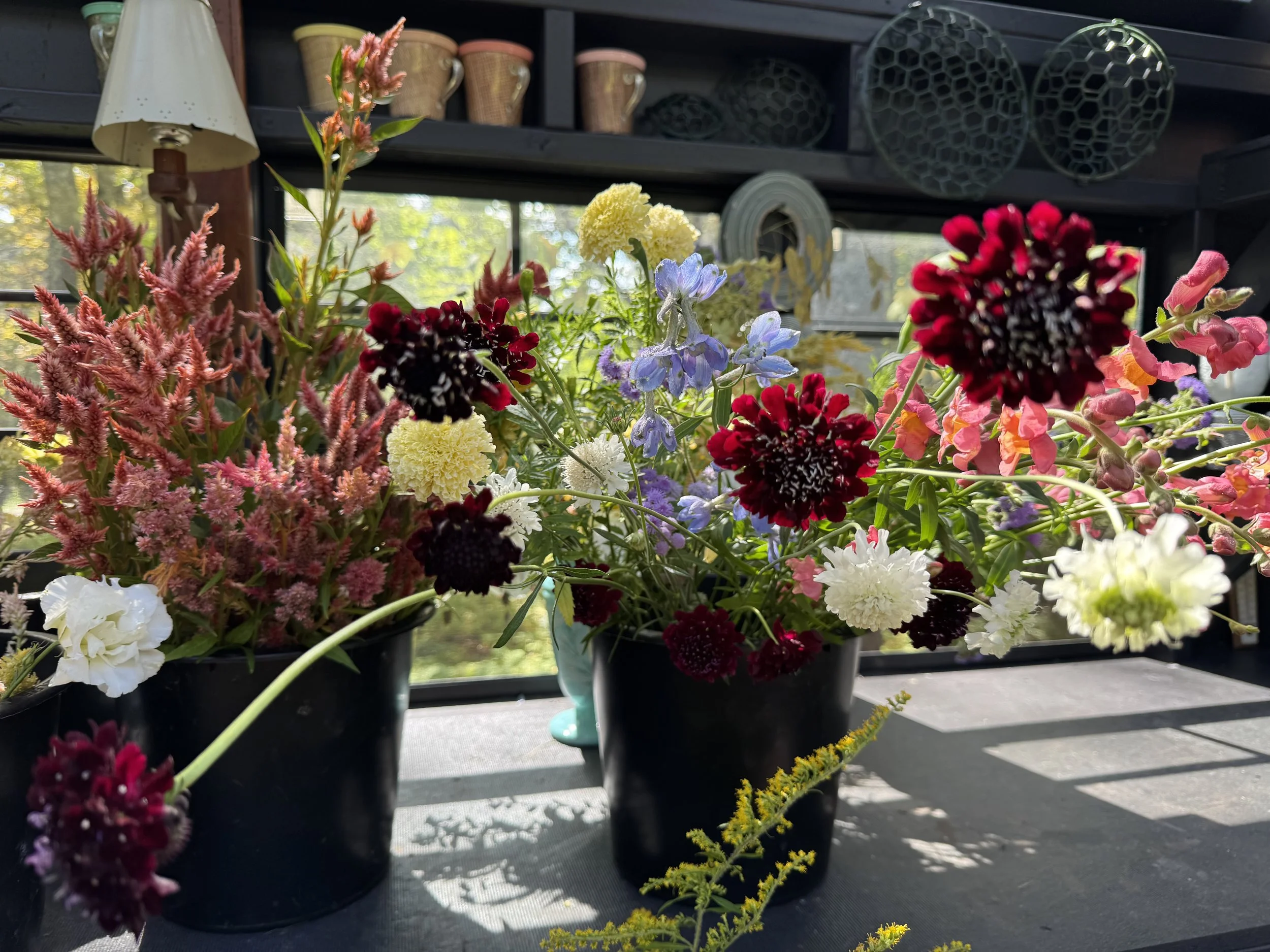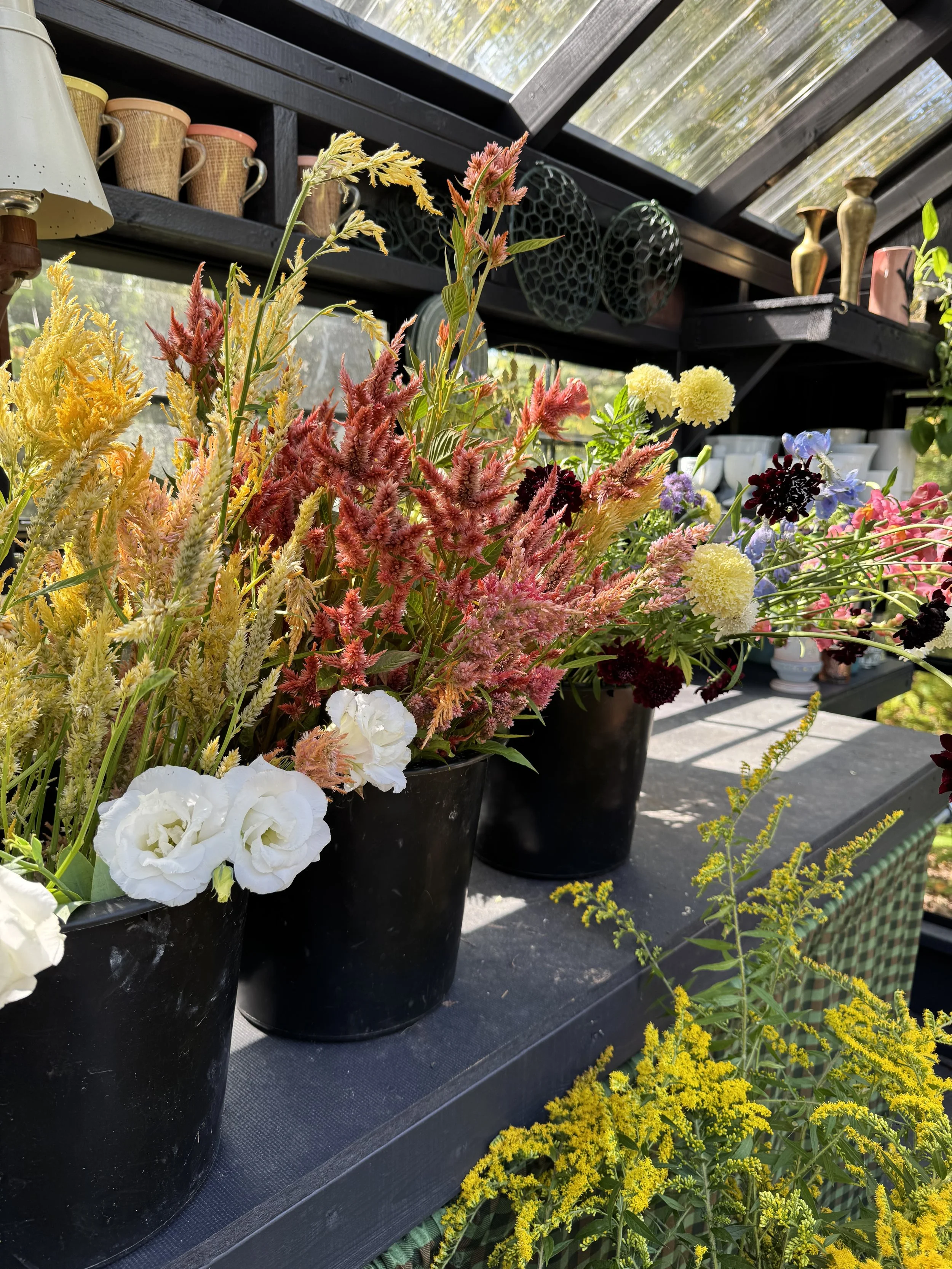 2026 flowers include the following: Capanula, Pansies, Dianthus, Stock, Sweet Peas, Ranunculus, Delphinium, Phlox, Queen Anne’s Lace, Orlaya, Bupleurum, Belle of Ireland, Snapdragons, Iceland Poppies, Honeywort, Jewels of Opal, Calendula, Cosmos, Black-eyed Susan, Alyssum, Gomphrena, Clarkia, Scabiosa, Monarda, Marigold, Salpiglossis, Statice, Celosia, Feverfew, Salvia, China Aster, Agrostemma, Larkspur, Bachelor Buttons, Lisianthus, Coreopsis, Dahlias, Nigella, Cress, Amaranth, Saponaria, Veronica, Rudbeckia, Mountain Mint, Hyssop, Allium, Tulips, Goldenrod, Bleeding Hearts Hydrangea, Ornamental grasses, Zinnias, Paperwhites, Goatsbeard, Amaryllis, Yarrow, Echinacea, Agastache, Winter greens, Berries, Flowering branches and more.